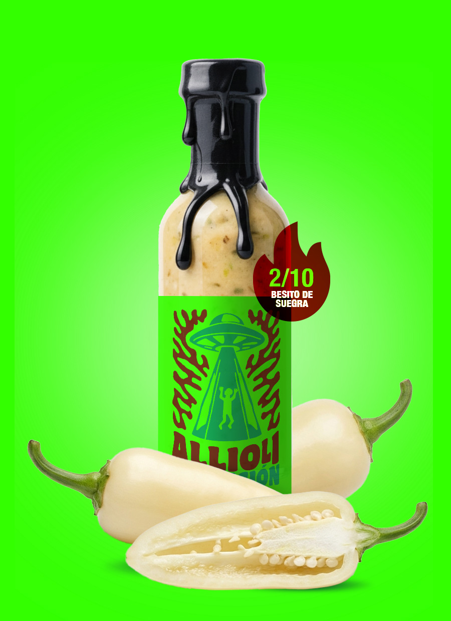 Nuestra salsa eleva la suavidad sedosa del alioli tradicional con el jalapeño blanco fresco: un toque dulce, ligeramente vegetal y frutal, sin la intensidad picante de los jalapeños verdes habituales. El resultado es una salsa rica y sabrosa, con el ajo aromático como protagonista y un calor limpio y vibrante que ilumina cada bocado.