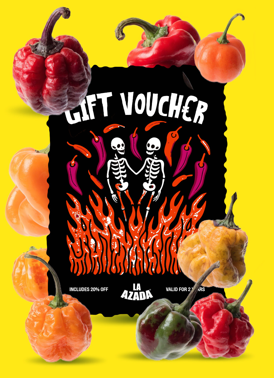 Our Scoville Gift Voucher is available for use at our store and available in 50€, 100€ and 200€ denominations! It’s ideal for birthdays, holidays, or any special occasion and brings flavour, excitement, and a fiery kick to every gift! As a special bonus, a 20% off discount on all hot sauces is included! The gift that keeps on burning! 🔥